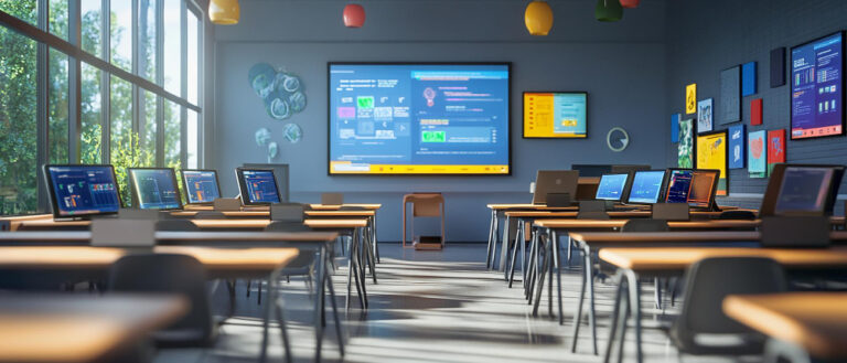 Our Smart Education Solutions combine advanced hardware with powerful software to create interactive classrooms and efficient school management systems. From touch-enabled display panels to ERP platforms and fully integrated smart classrooms, we equip institutions with the tools to enhance both teaching and administration.